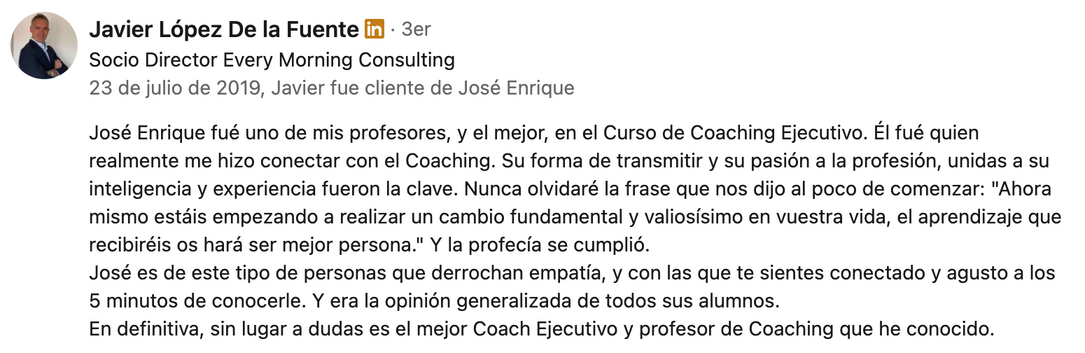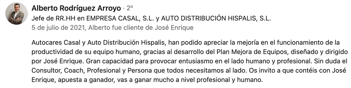 Ha participado en Procesos de Transformación para Organizaciones como Volkswagen-Audi, Ford, Renault, Volvo, Iveco, Nissan, Campofrío, Zurich, Desigual, Banco Sabadell, Banco Popular, Mediamarkt España, Enagás, Gas Natural, Esteve, Altran, Limasa,Grupo Ángel Camacho, Inditex, Seat, Fundación Vital, Orange, Caixabank, etc...