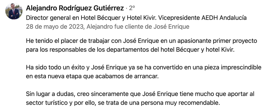 recomendaciones o comentarios de algunos clientes